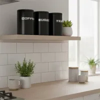 Recipiente Lata x 3 Azucar, Te, Cafe c/Asa 11 x 16 Negro Cod ...