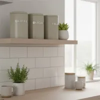 Recipiente Lata x 3 Azucar, Te, Cafe c/Asa 11 x 16 Beige Cod ...