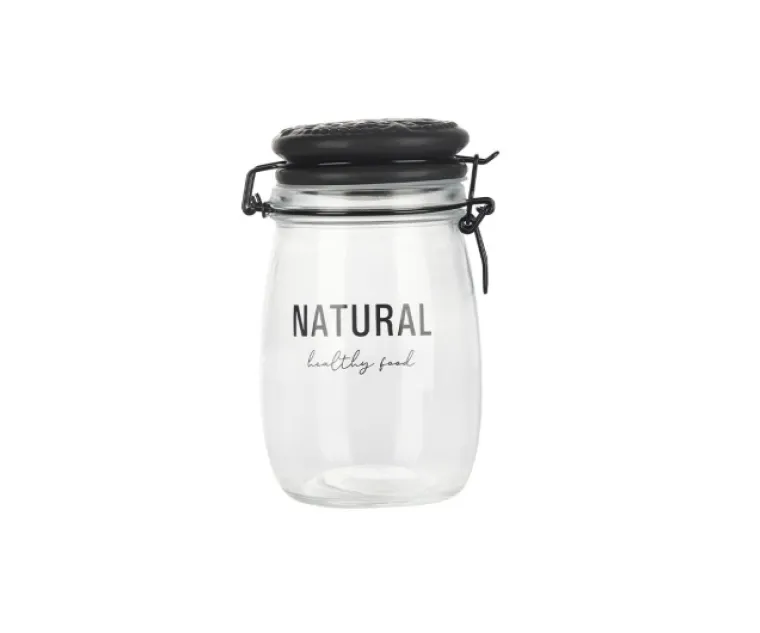 Frasco SELECTA Vidrio Tapa Ceramica Negra Broche Clip Leyenda "NATURAL" 1 lt. 18 X 10 Cod. 419002M