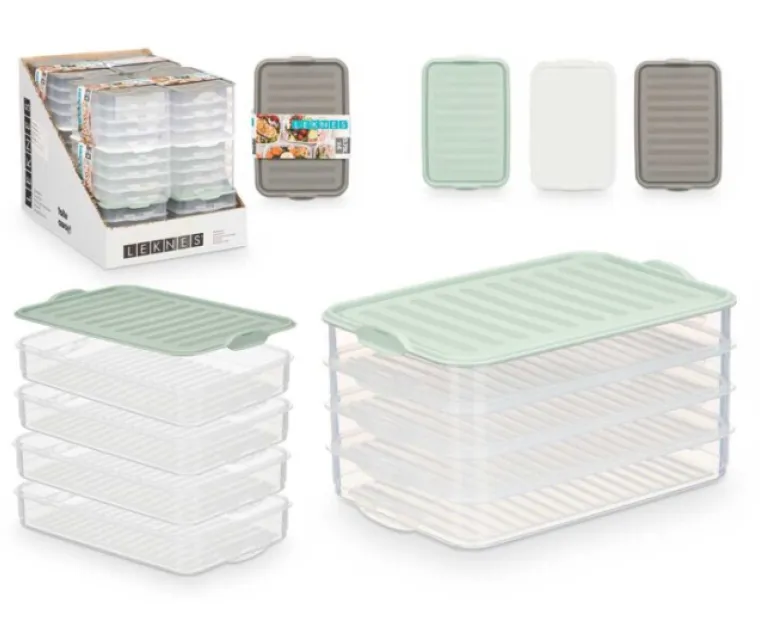 Bols Plastico LEKNES 4 niveles tipo fiambrera 750 ml. c/u 22 x 15 x 12 alto total Cod. 92823