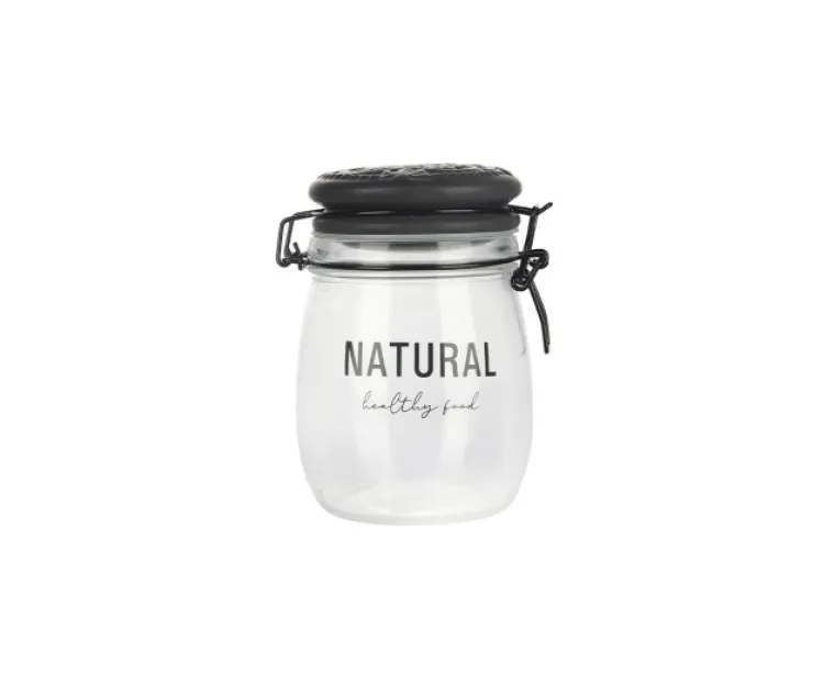 Frasco SELECTA Vidrio Tapa Ceramica Negra Broche Clip Leyenda "NATURAL" 750 ml. 15 X 10 Cod. 419002S